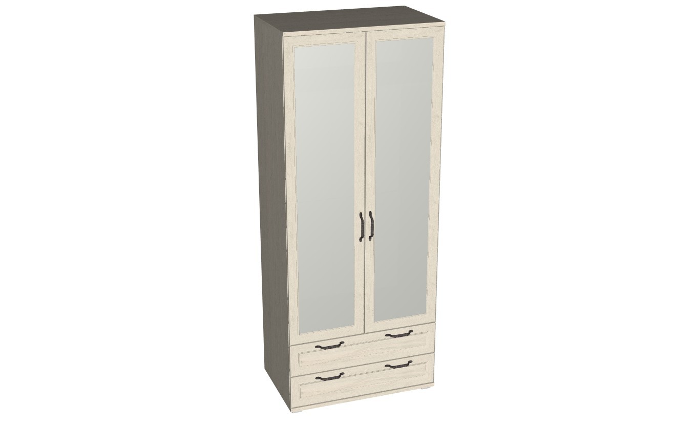 Шкаф двухдверный зеркальный с ящиками 90 см S90.2z - "Рандеву" - Дуб оксид