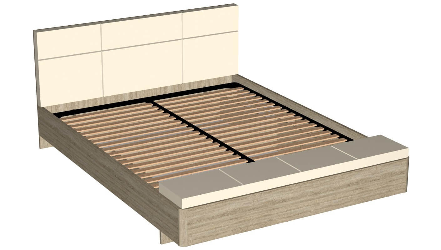 Кровать 180 см с банкеткой + механизм подъема кровати - "Беата" - Дуб сонома/Софт светлый