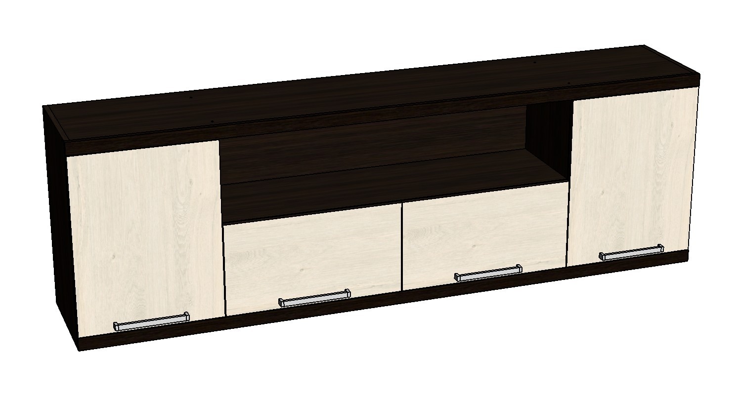 Детали корпуса изготовлены из ЛДСП толщиной 16 мм с использованием кромки 0,4 мм. Фасады выполнены из ЛДСП толщиной 16 мм с использованием кромки 0,4 мм в сочетании с декоративным профилем из МДФ. Модули устанавливаются на регулируемые ножки высотой 20 мм. Модули с ящиками комплектуются шариковыми направляющими полного выдвижения.