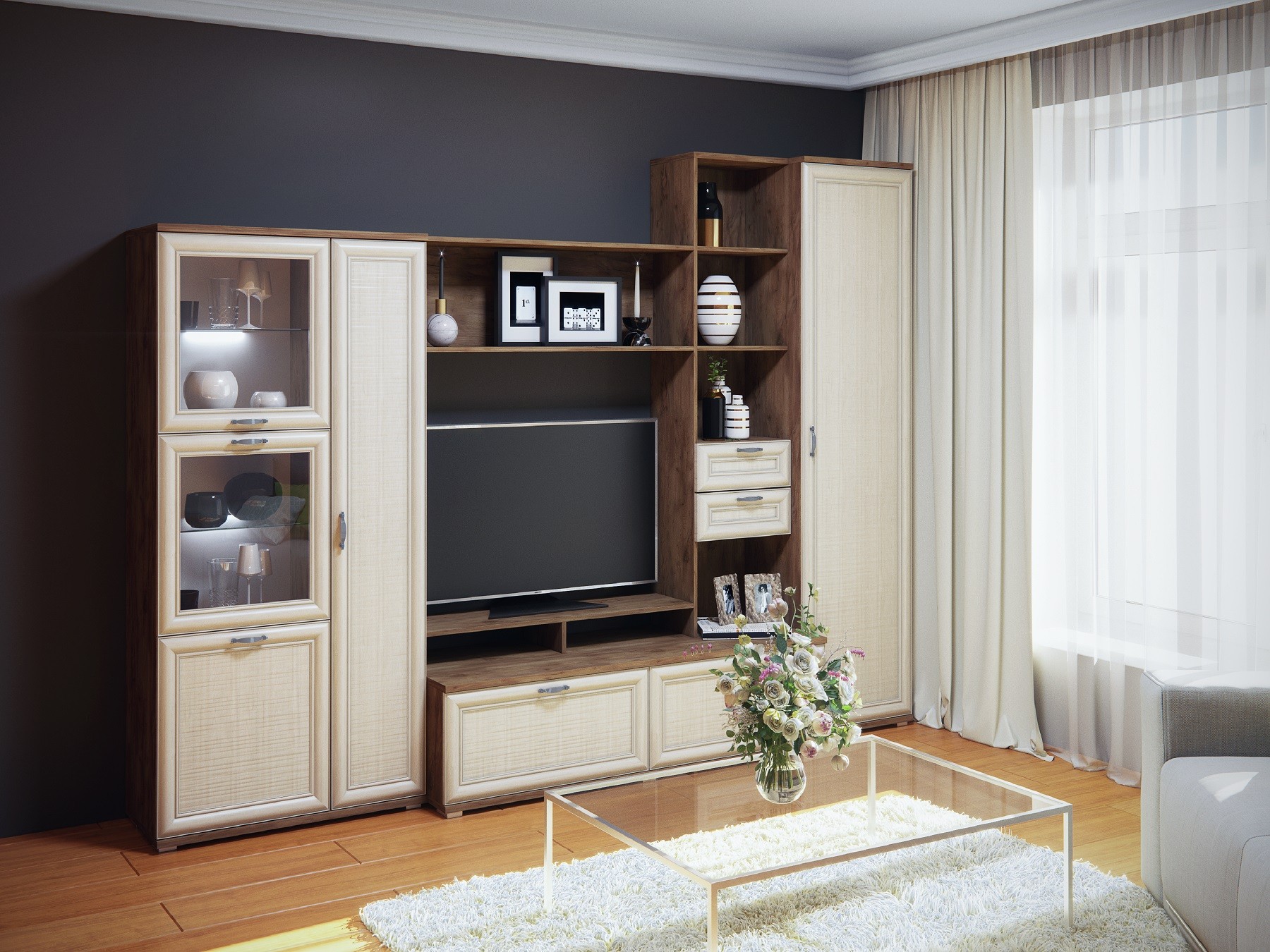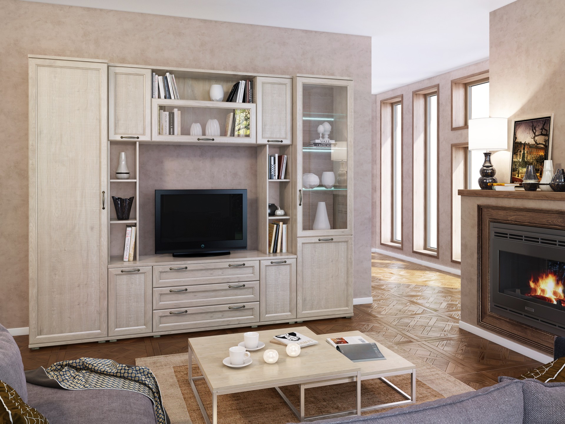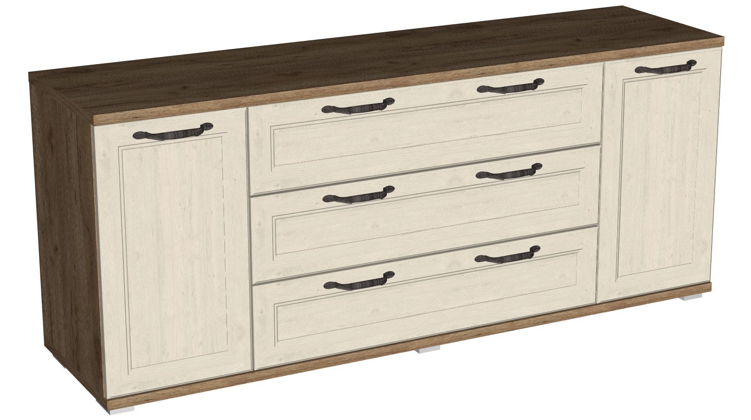 Детали корпуса изготовлены из ЛДСП толщиной 16 мм и 22 мм с использованием кромки 0,4 и 2,0 мм. Фасады выполнены из профиля МДФ толщиной 18 мм в сочетании с ЛМДФ толщиной 6 мм. Модули с ящиками комплектуются шариковыми направляющими полного выдвижения. Петли фирмы Titus.