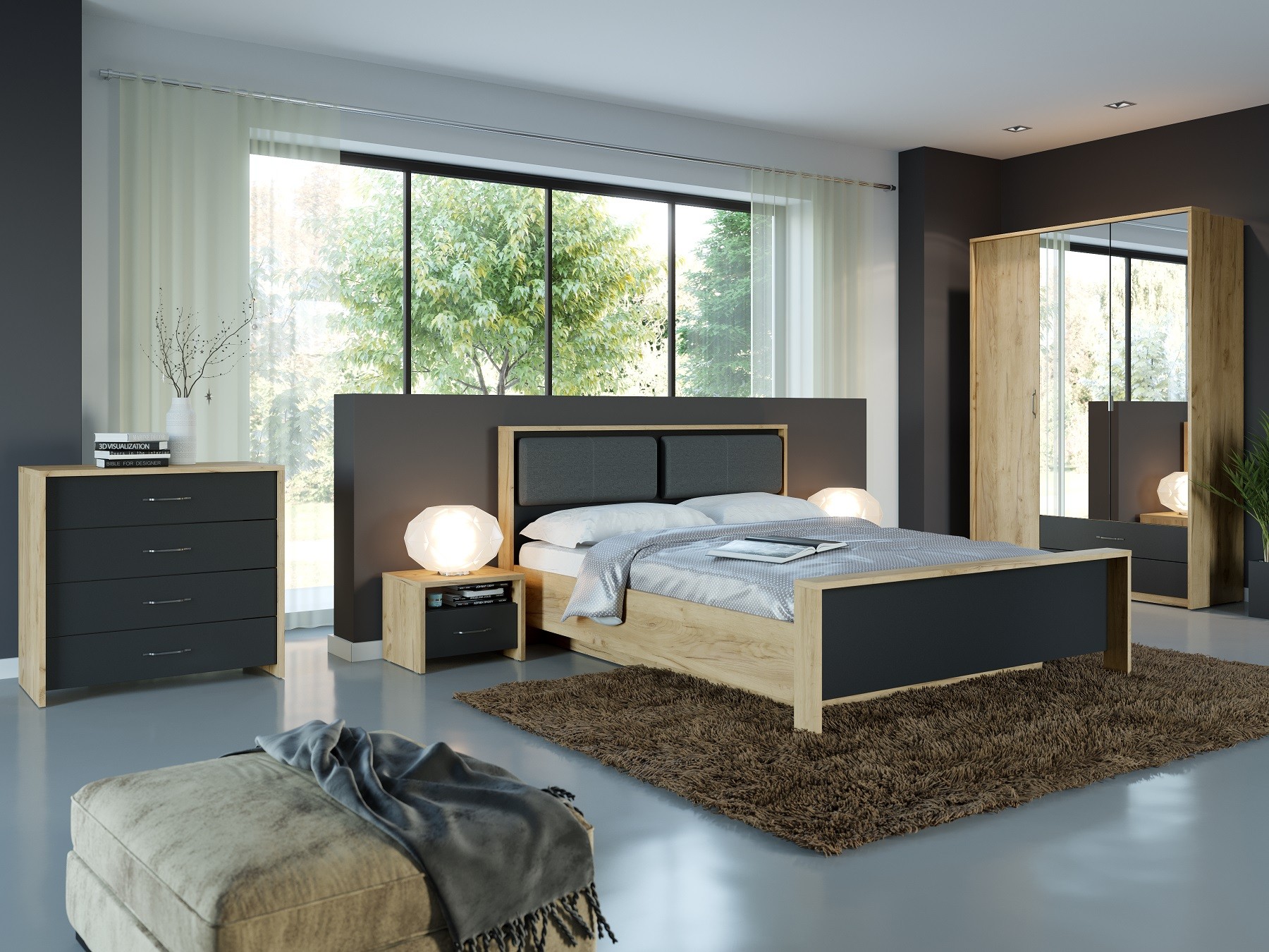 Детали корпуса изготовлены из ЛДСП толщиной 16 и 22 мм с использованием кромки 0,4 и 2,0 мм. Фасады выполнены из ЛМДФ толщиной 16 мм и облицованного пленкой ПВХ и ЛДСП толщиной мм с использованием кромки 0,4 мм. Спинки кроватей оформлены мягкими элементами из текстиля и экокожи. Модули с ящиками комплектуются шариковыми направляющими полного выдвижения. Петли фирмы Titus, с возможностью использования доводчиков.