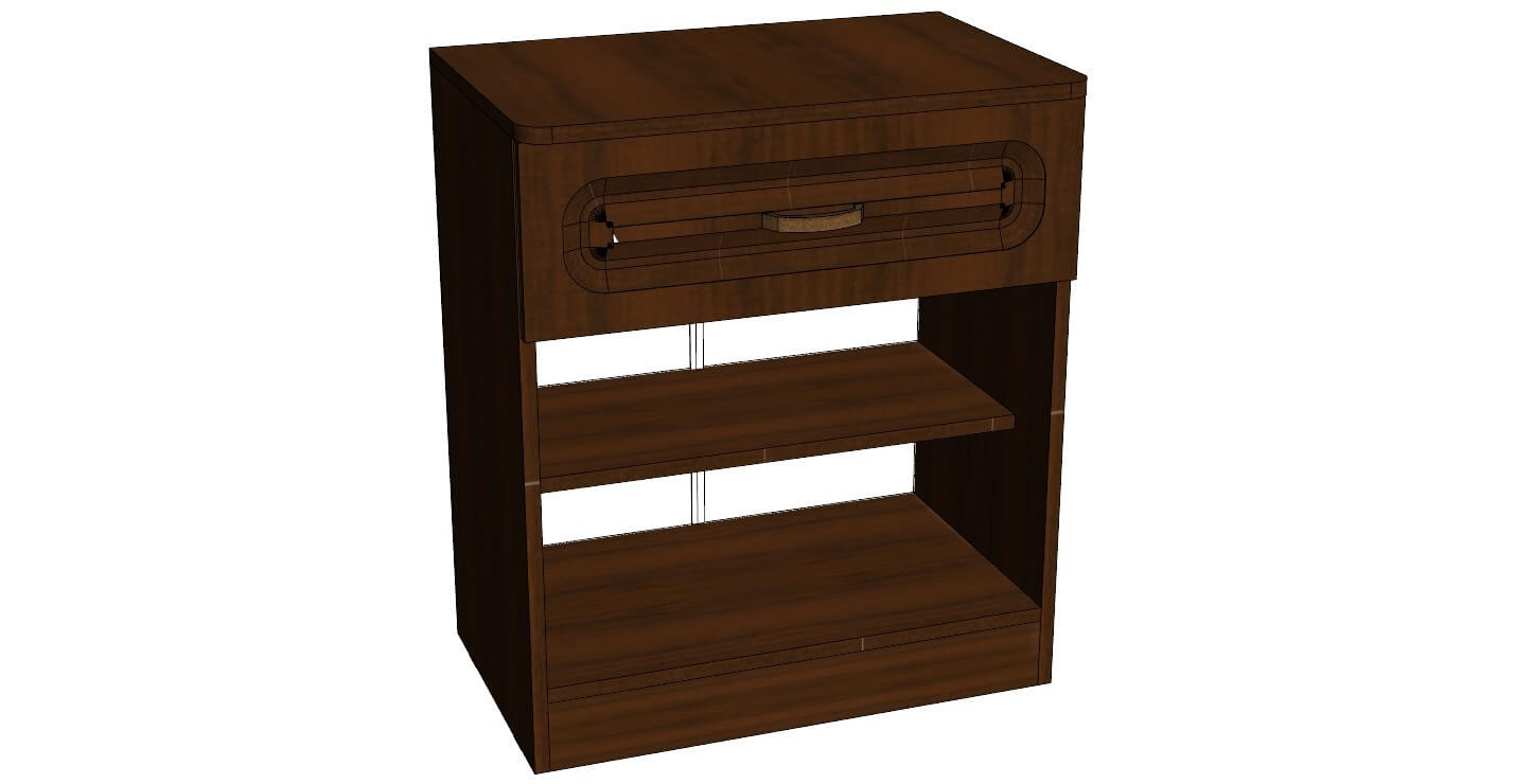 Детали корпуса изготовлены из ЛДСП толщиной 16 мм с использованием кромки 0,4 мм. Фасады выполнены из ЛМДФ толщиной 16 м облицованного пленкой ПВХ. Модули с ящиками комплектуются шариковыми направляющими полного выдвижения.
