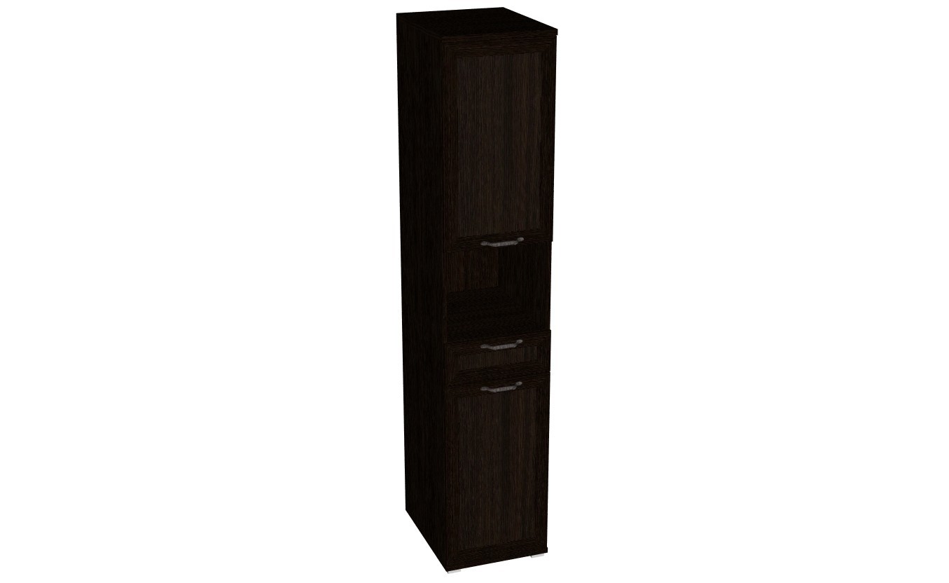Детали корпуса изготовлены из ЛДСП толщиной 16 мм с использованием кромки 0,4 мм. Фасады выполнены из ЛДСП толщиной 16 мм с использованием кромки 0,4 мм в сочетании с декоративным профилем из МДФ. Модули устанавливаются на регулируемые ножки высотой 20 мм. Модули с ящиками комплектуются шариковыми направляющими полного выдвижения.