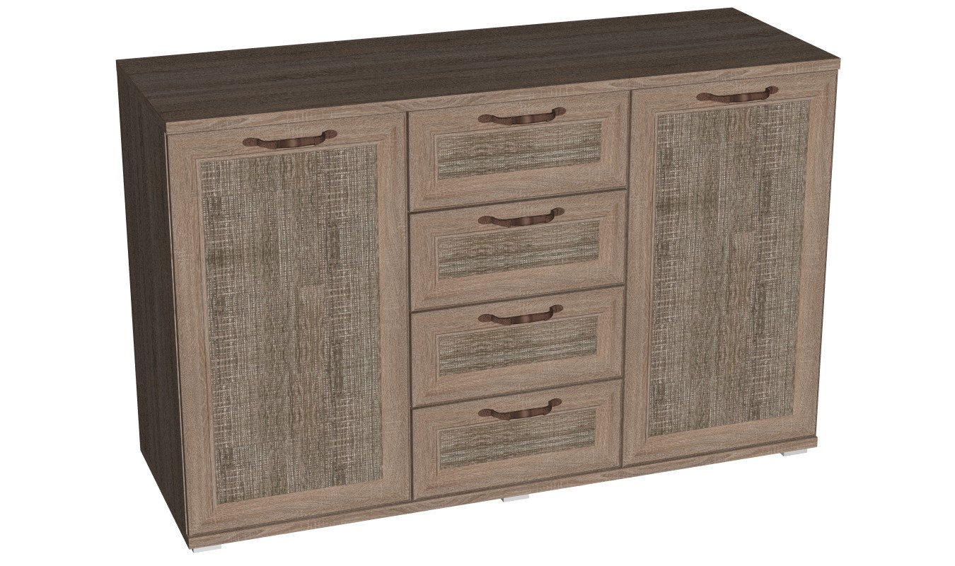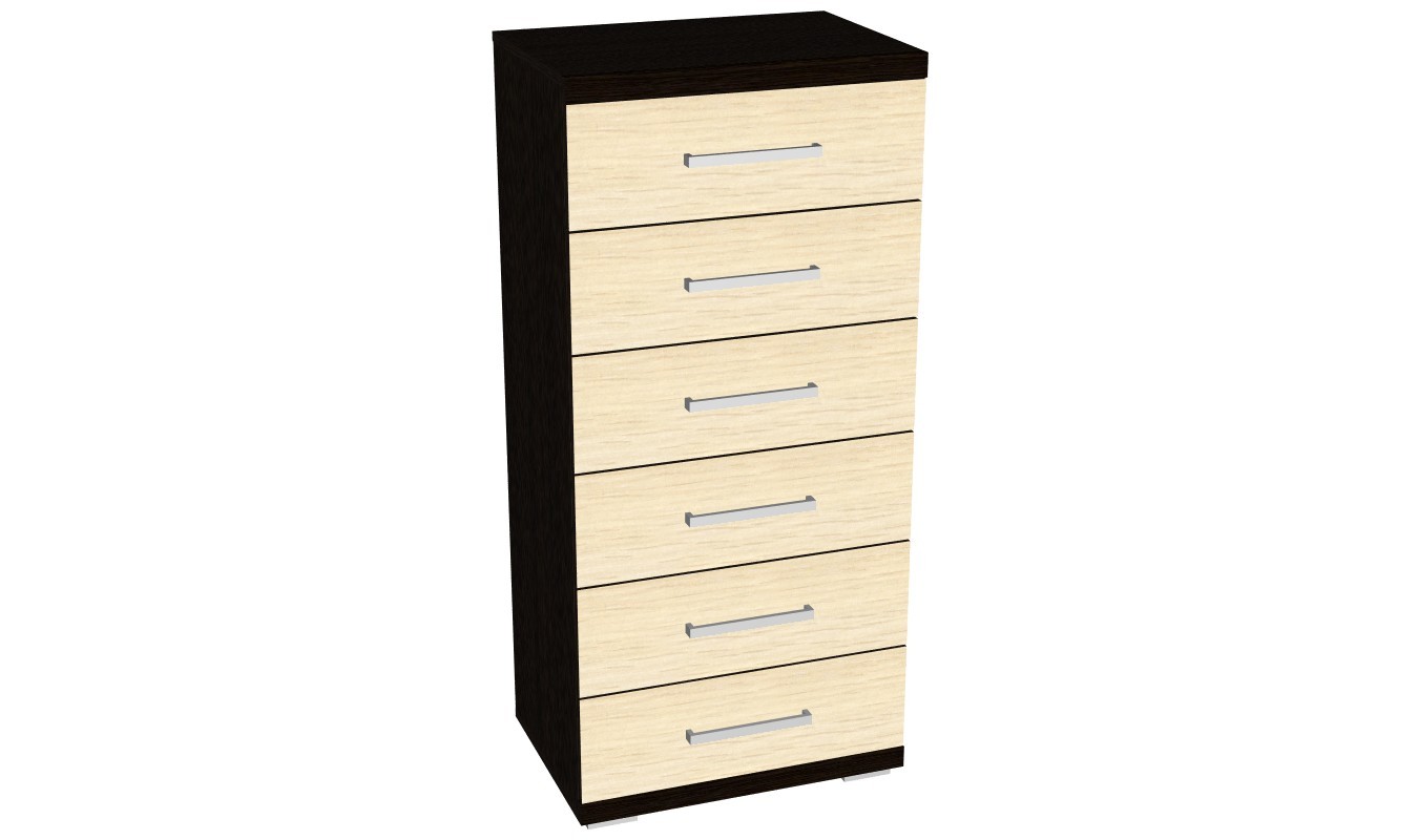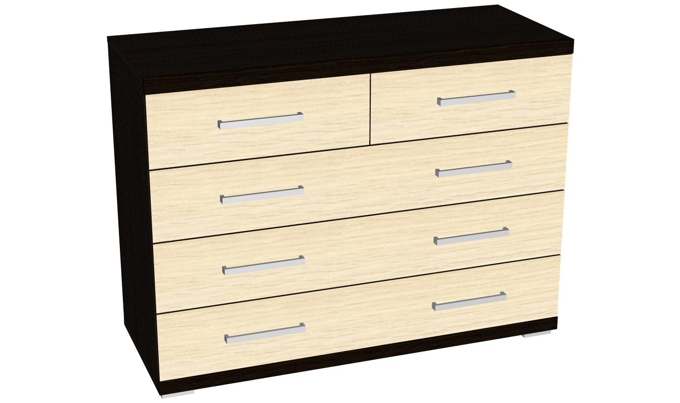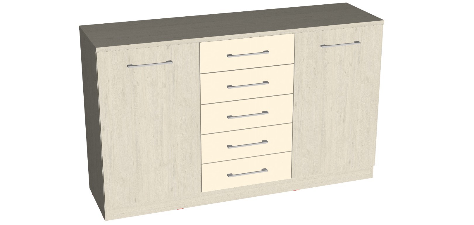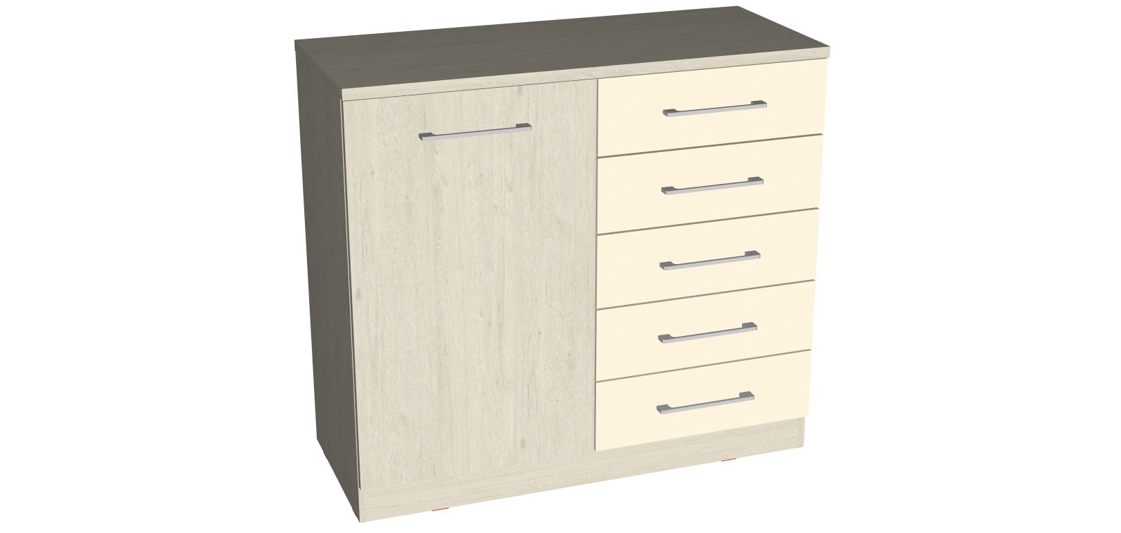 Детали корпуса изготовлены из ЛДСП толщиной 16 мм с использованием кромки 0,4 мм. Фасады выполнены из ЛДСП толщиной 16 мм с использованием кромки 0,4 мм в сочетании с декоративным профилем из МДФ. Модули устанавливаются на регулируемые ножки высотой 20 мм. Модули с ящиками комплектуются шариковыми направляющими полного выдвижения.