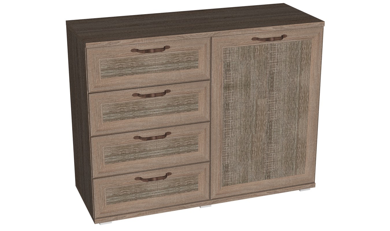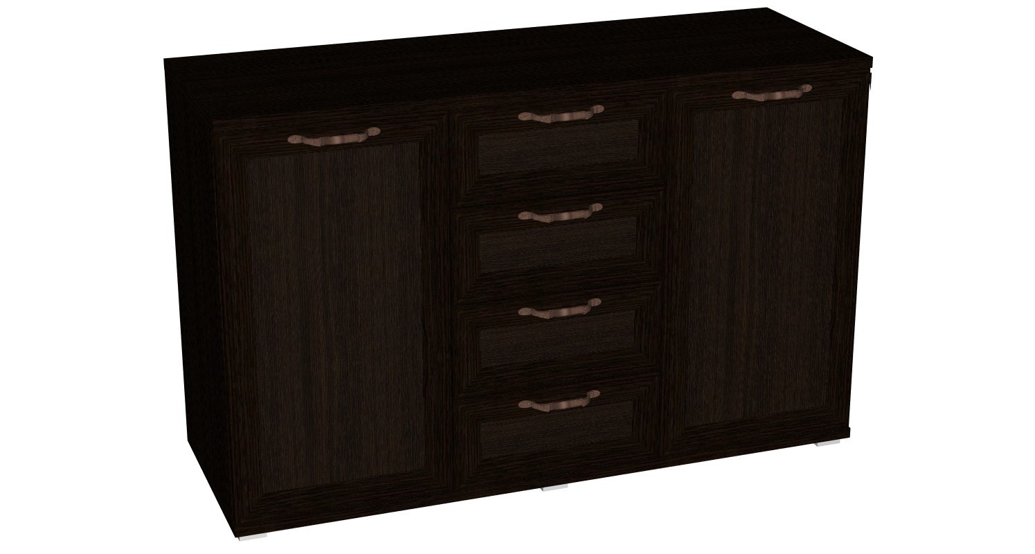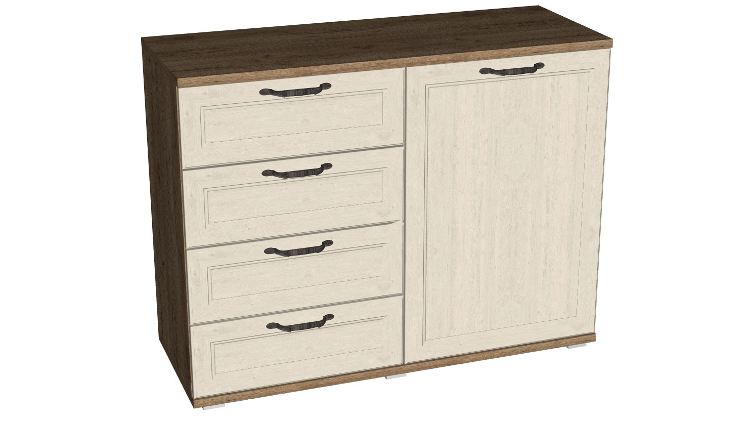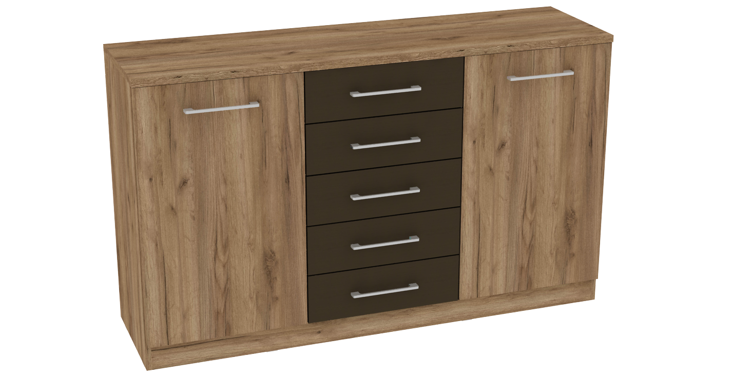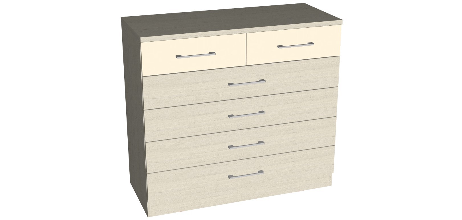 Детали корпуса изготовлены из ЛДСП толщиной 16 мм с использованием кромки 0,4 мм. Фасады выполнены из ЛДСП толщиной 16 мм с использованием кромки 0,4 мм в сочетании с декоративным профилем из МДФ. Модули устанавливаются на регулируемые ножки высотой 20 мм. Модули с ящиками комплектуются шариковыми направляющими полного выдвижения.