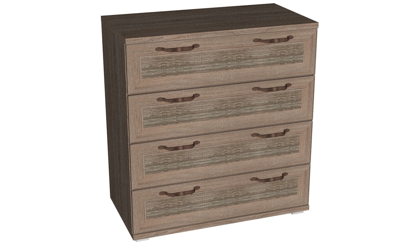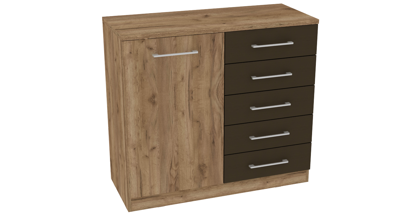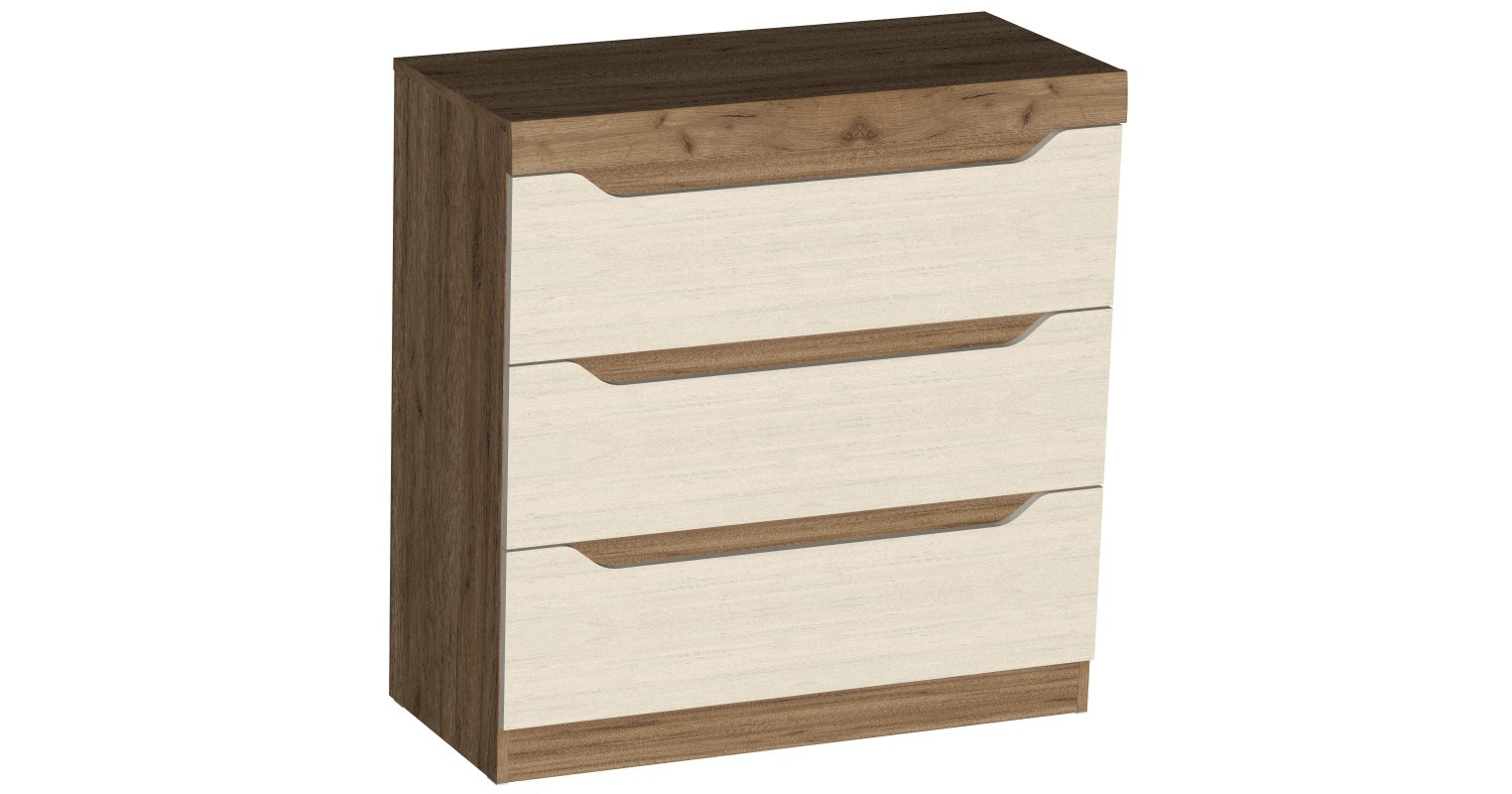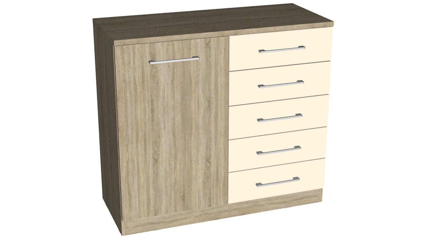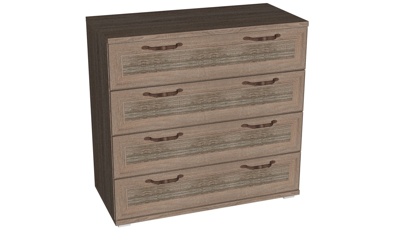 Детали корпуса изготовлены из ЛДСП толщиной 16 мм с использованием кромки 0,4 мм. Фасады выполнены из ЛДСП толщиной 16 мм с использованием кромки 0,4 мм в сочетании с декоративным профилем из МДФ. Модули устанавливаются на регулируемые ножки высотой 20 мм. Модули с ящиками комплектуются шариковыми направляющими полного выдвижения.