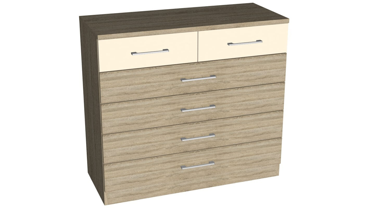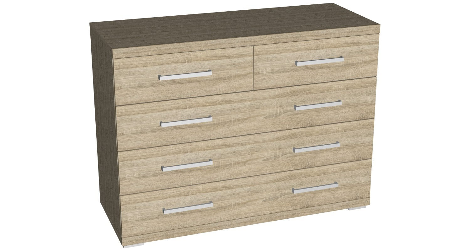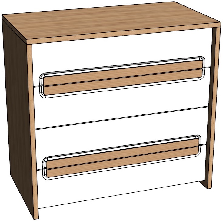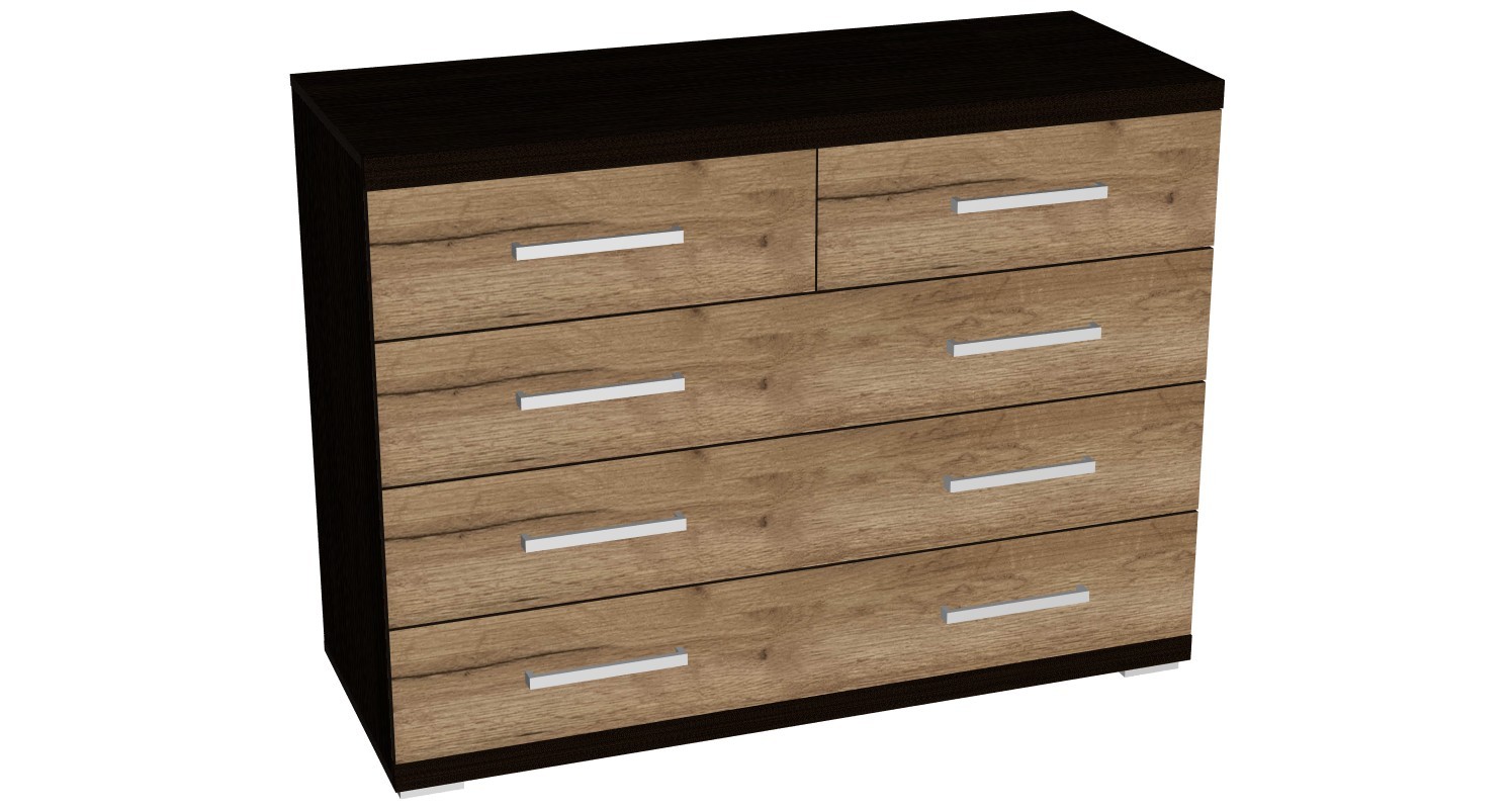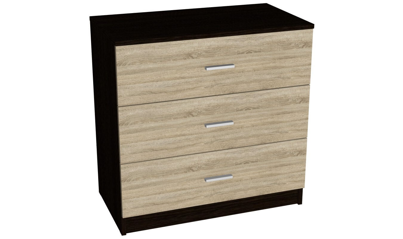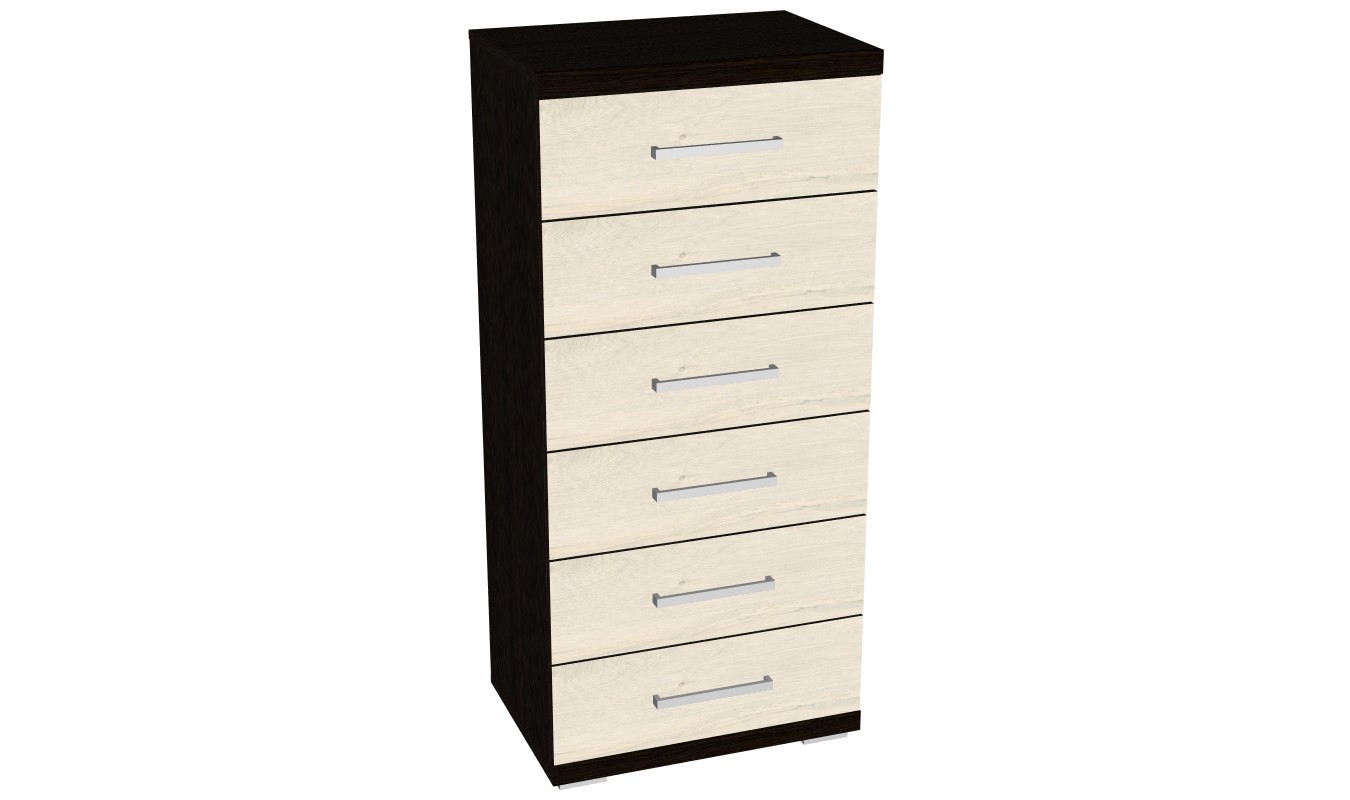 Детали корпуса изготовлены из ЛДСП толщиной 16 мм с использованием кромки 0,4 мм. Фасады выполнены из ЛДСП толщиной 16 мм с использованием кромки 0,4 мм в сочетании с декоративным профилем из МДФ. Модули устанавливаются на регулируемые ножки высотой 20 мм. Модули с ящиками комплектуются шариковыми направляющими полного выдвижения.